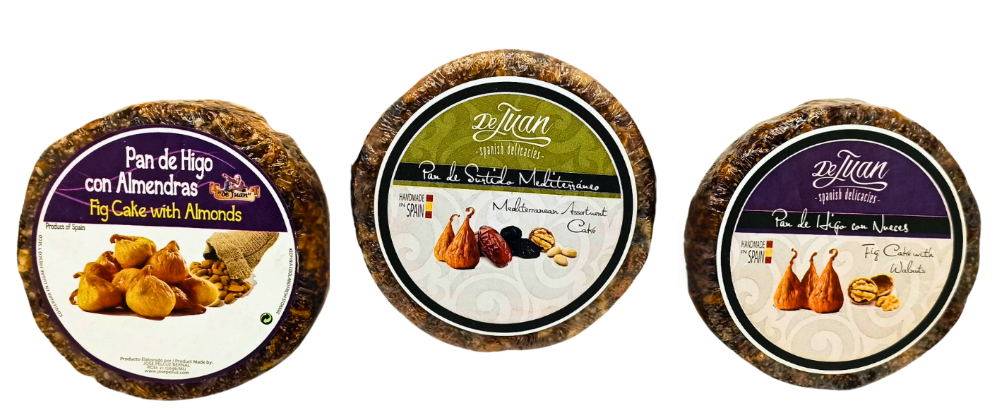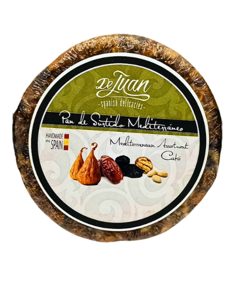 Fig cake with walnuts, dates and currants. Handcrafted from mediterranean figs. Perfect with cheese, wine, or as a snack.